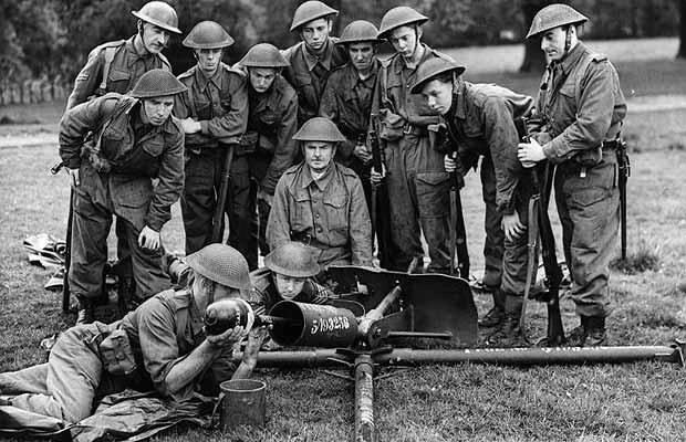 A group of Home Guard carrying out weapons practice